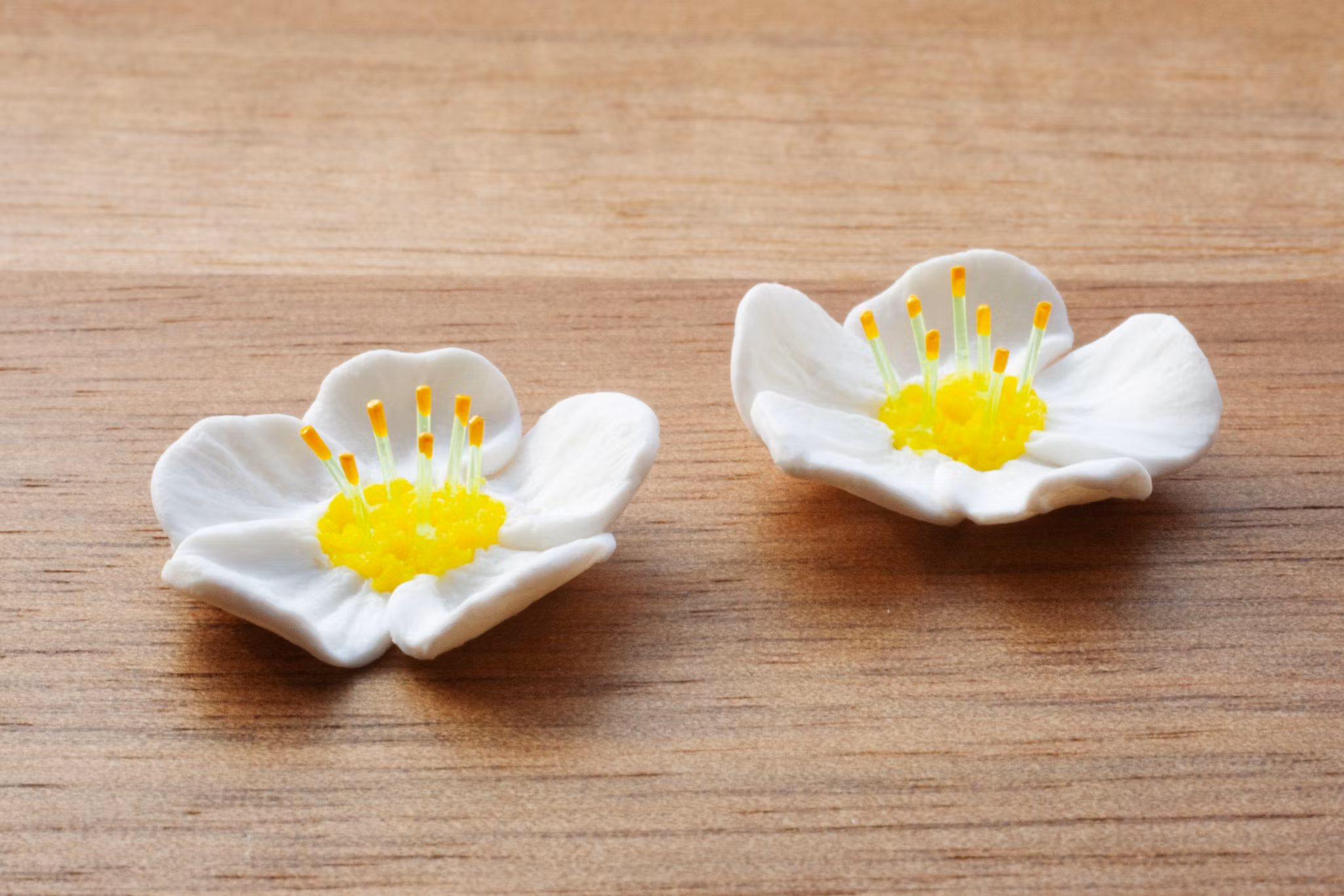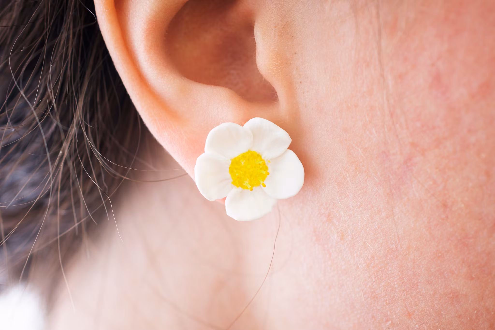 Örhängen gjorda i polymerlera. Stift i titan/kirurgiskt stål.