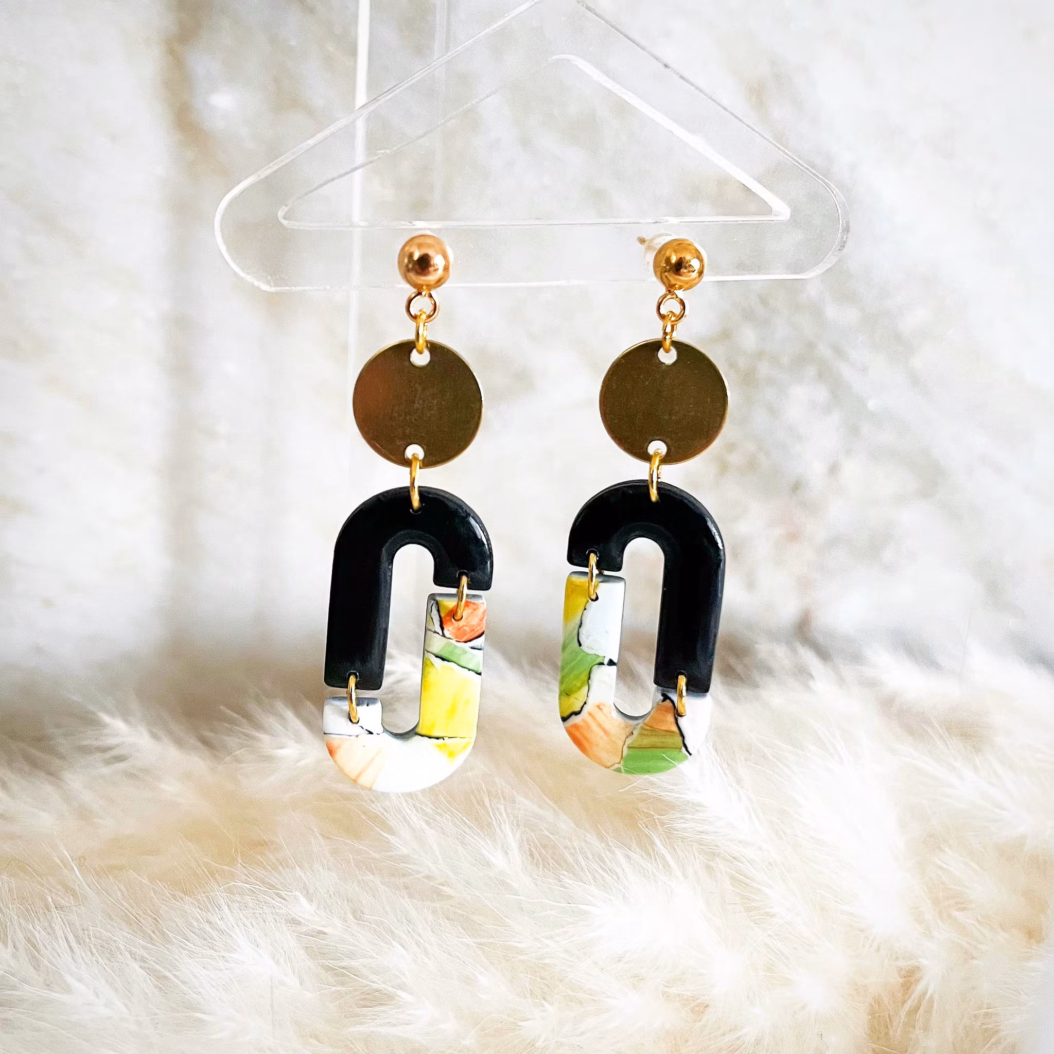 Multicolored Ovals 229 kr Örhängen tillverkade i polymerlera med resin ovanpå. Smyckesdelar i guldpläterad metall. I lager Lägg i varukorgen Dela Lagersaldo: 1 Artikelnummer: 154 Information Örhängen tillverkade i polymerlera med resin ovanpå. Smyckesdelar i guldpläterad metall.